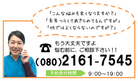その時だけでなく、毎日の生活での改善点なども教えて頂けたので、今後も気を付けて生活していきたいと思っています。