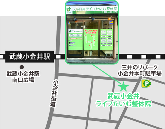 武蔵小金井駅南口から徒歩2分。蛇の目通り沿い